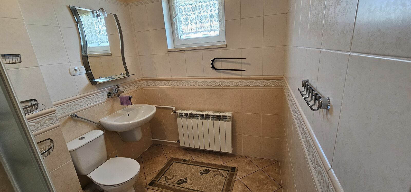 Sprzedam dom jednorodzinny + oddzielny garaż z komórką. Dom nadaje się do zamieszkania. Położony jest na działce 4,6 ara. Jest to dom piętrowy z podpiwniczeniem i balkonami, z ogrzewaniem gazowym. Układ pomieszczeń:parter: przedsionek, korytarz, kuchnia ze spiżarką, obszerny salon z jadalnią, łazienka, osobne WC