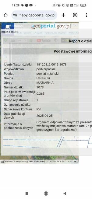 2Sprzedam dwie działki o nr 1078, 1079 w miejsc. Maziarnia, gm. Harasiuki. Cena: 1000zl/ar