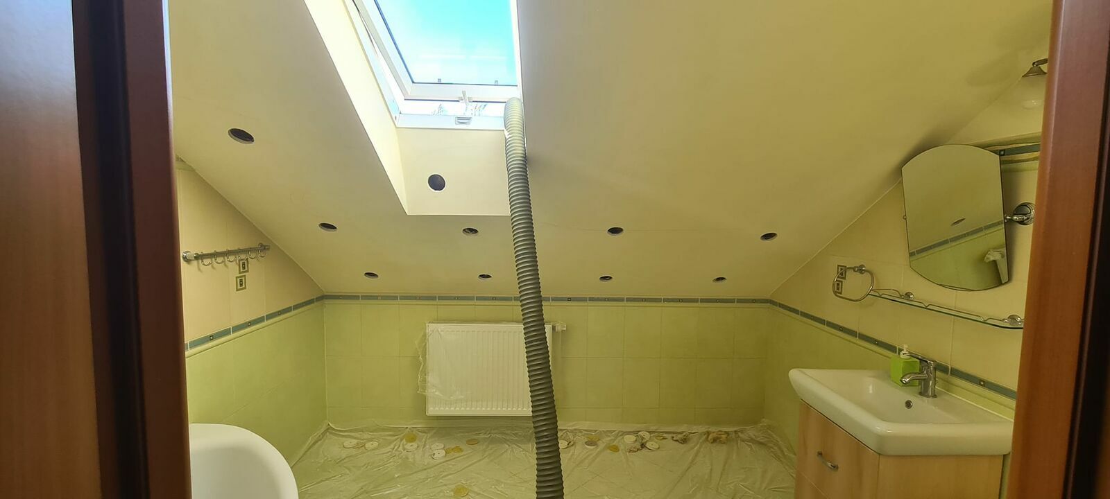 Za pomocą tej metody możemy wykonać naprawę izolacji dachu , poddasza , skosów bez demontażu płyt kartongipsowych.