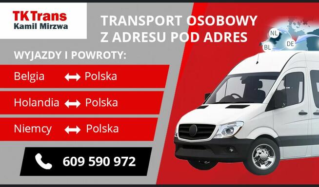 ️ Transport Polska – Belgia – Holandia – Niemcy Wyjazdy dwa razy w tygodniu: czwartek i piątek Dwóch ...